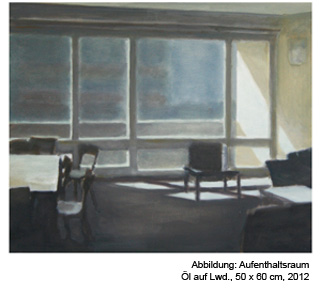 The theme of the „stays“ series is painting itself, the painting techniques, colours, composition, perspective etc. and above all, light and shade. Those means are applied in a reduced form, generating spatial views and compositions.